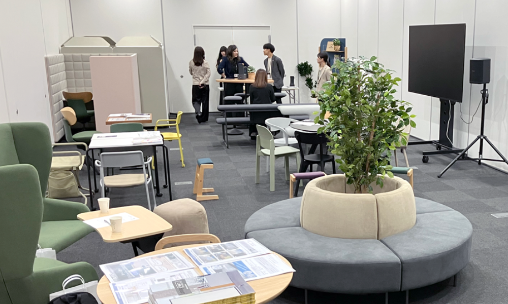 訪れた方々は、実際に座って会話を楽しんだり、業務シーンを想定した使い方をイメージしたりしながら、空間づくりのヒントを得ていました。