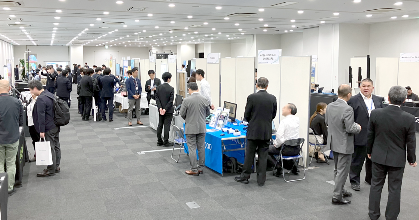 展示ゾーンでは、32社がブースを構え、最新の映像・音響・ICTソリューションを紹介。来場者は各ブースで実機に触れながら、担当者の説明に熱心に耳を傾け、活発な情報交換が行われていました。